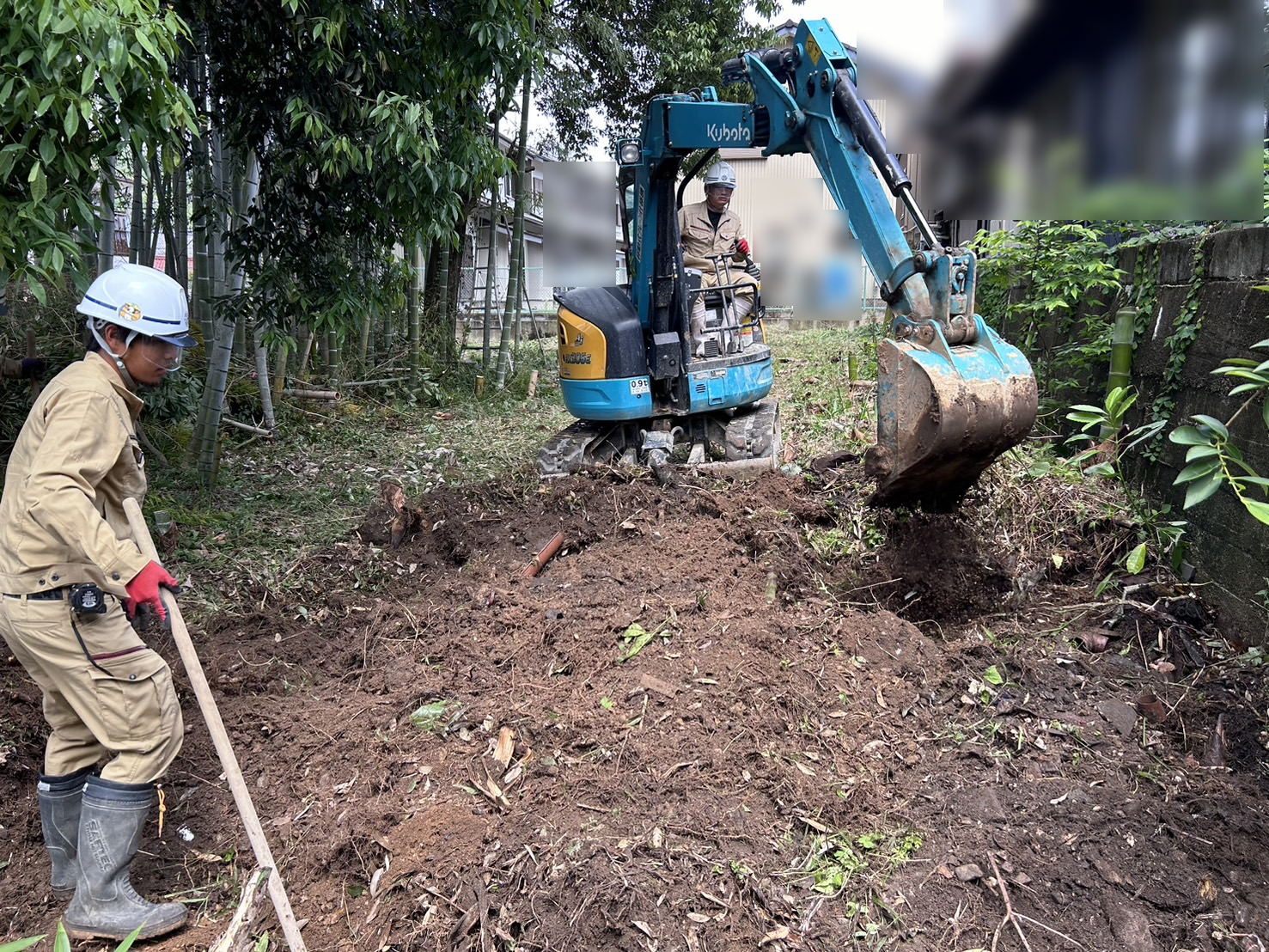 私たち晃絆建設では、土木・外構工事に携わる仲間を募集しています。伐採作業をはじめ、造成工事やエクステリア工事など、幅広い技術を身につけることができる職場です。